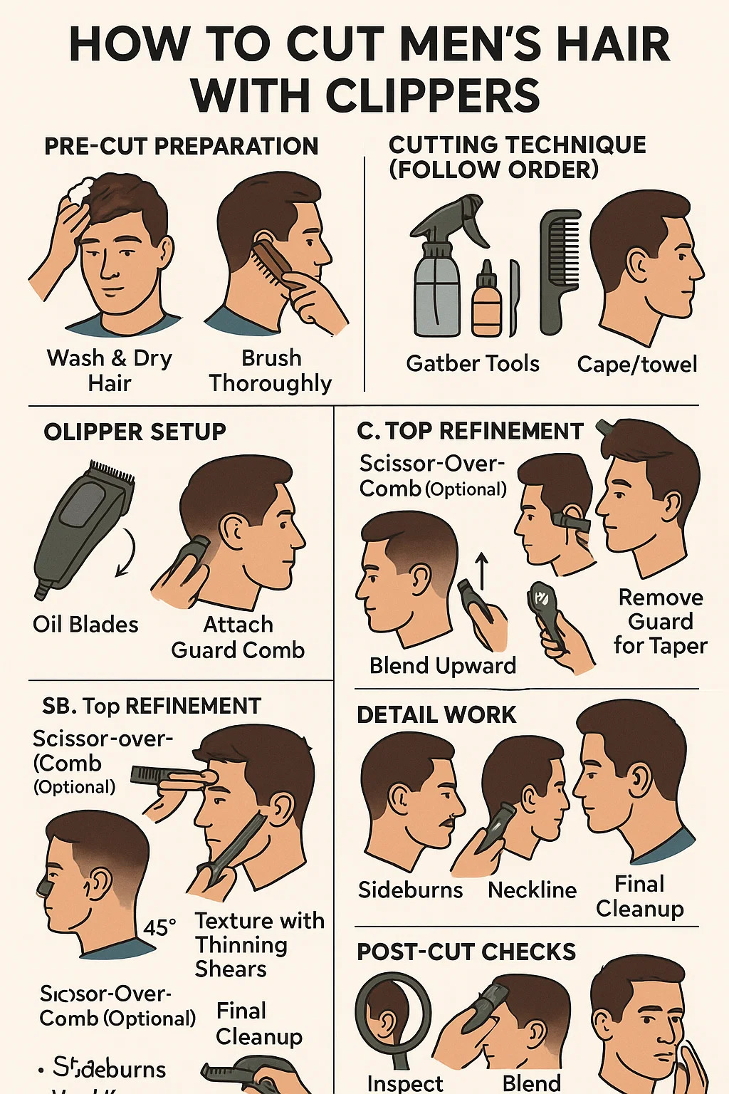 Hic 'a gradum-per-gradus dux ad cutting hominum capillus cum capillos clippers :