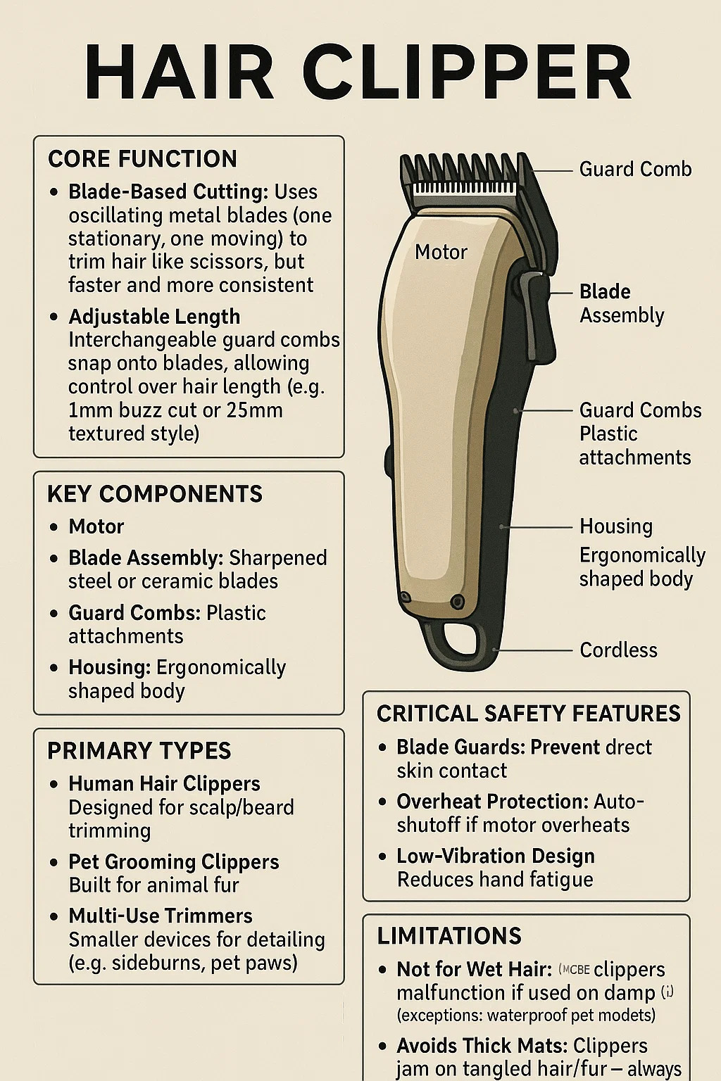 A Clipper capillus Est electrica grooming tool disposito ad interficiam capillos efficiently et uniformiter. Hic 'a detailed naufragii sui Core features et usus:
