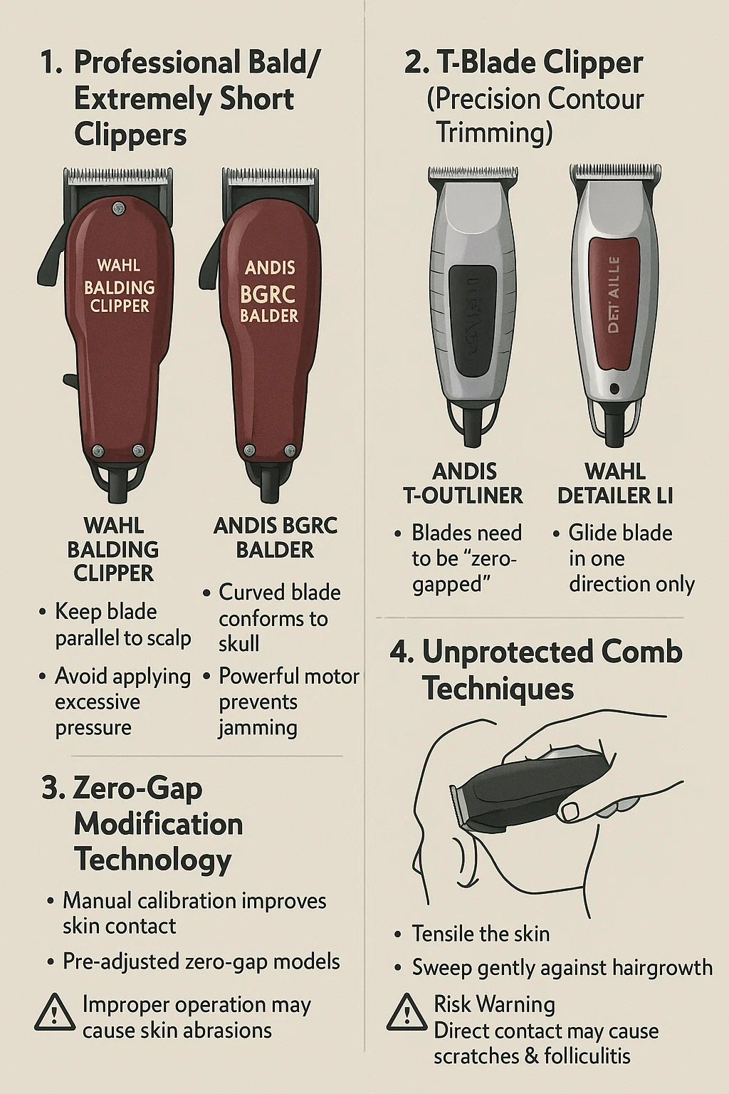 Ad ultimum propinquum-ad-scalpum tonsus, genera sequentia capillus retonsoribus et technicae artes novaculae proximae incidere possunt, complexionem notarum instrumentorum et artes operativas requirunt;